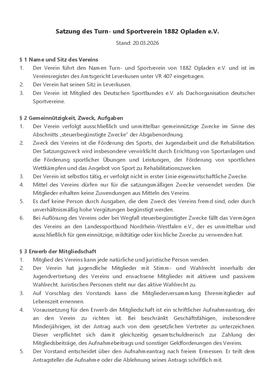 Satzung des Turn- und Sportverein 1882 Opladen e.V.